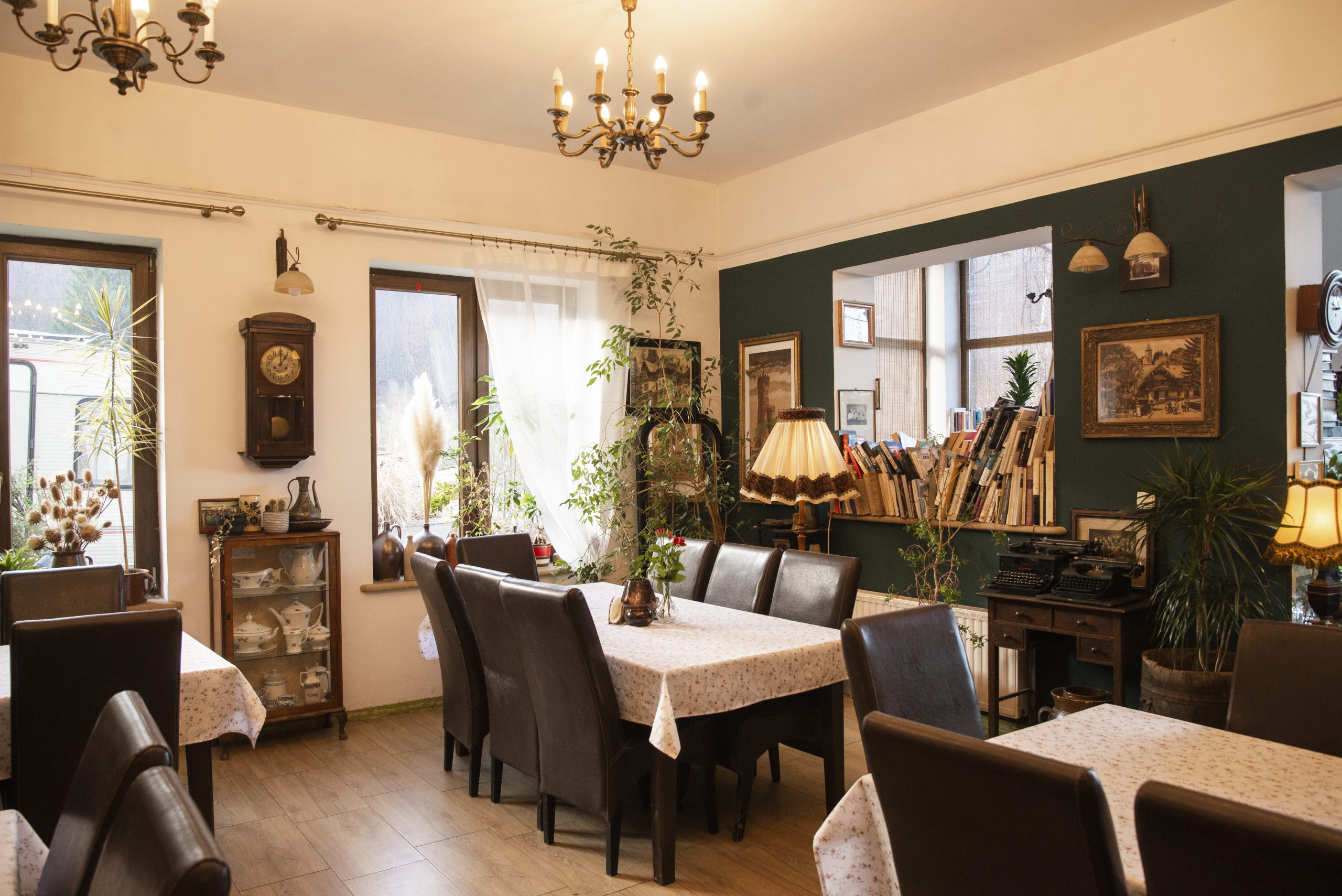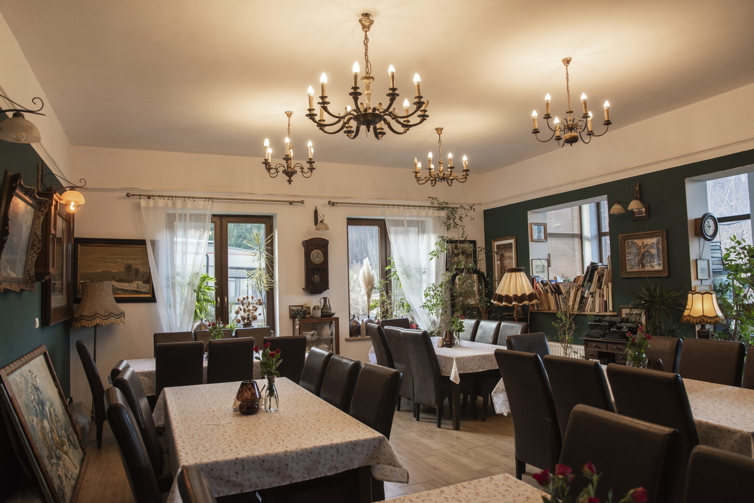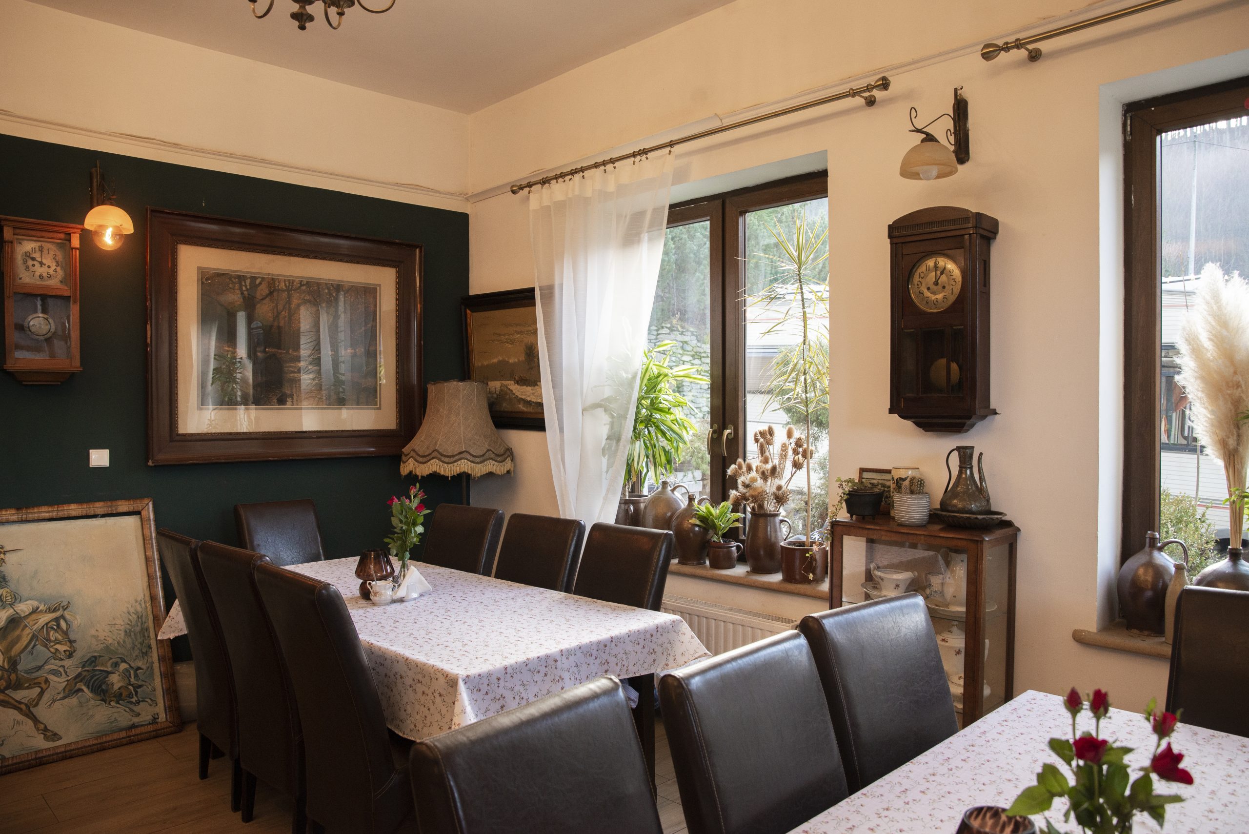 Oprócz noclegów i dobrego humoru proponujemy domowe posiłki: śniadania (w formie bufetu podawane w godzinach 08:30-10:00) oraz obiadokolacje (w godz. 17:00-19:00). Nasza jadalnia urządzona w stylu vintage ma swoisty charakter i zachęca do spędzania w niej chwil pełnych nostalgii w otoczeniu książek i historycznych pamiątek.